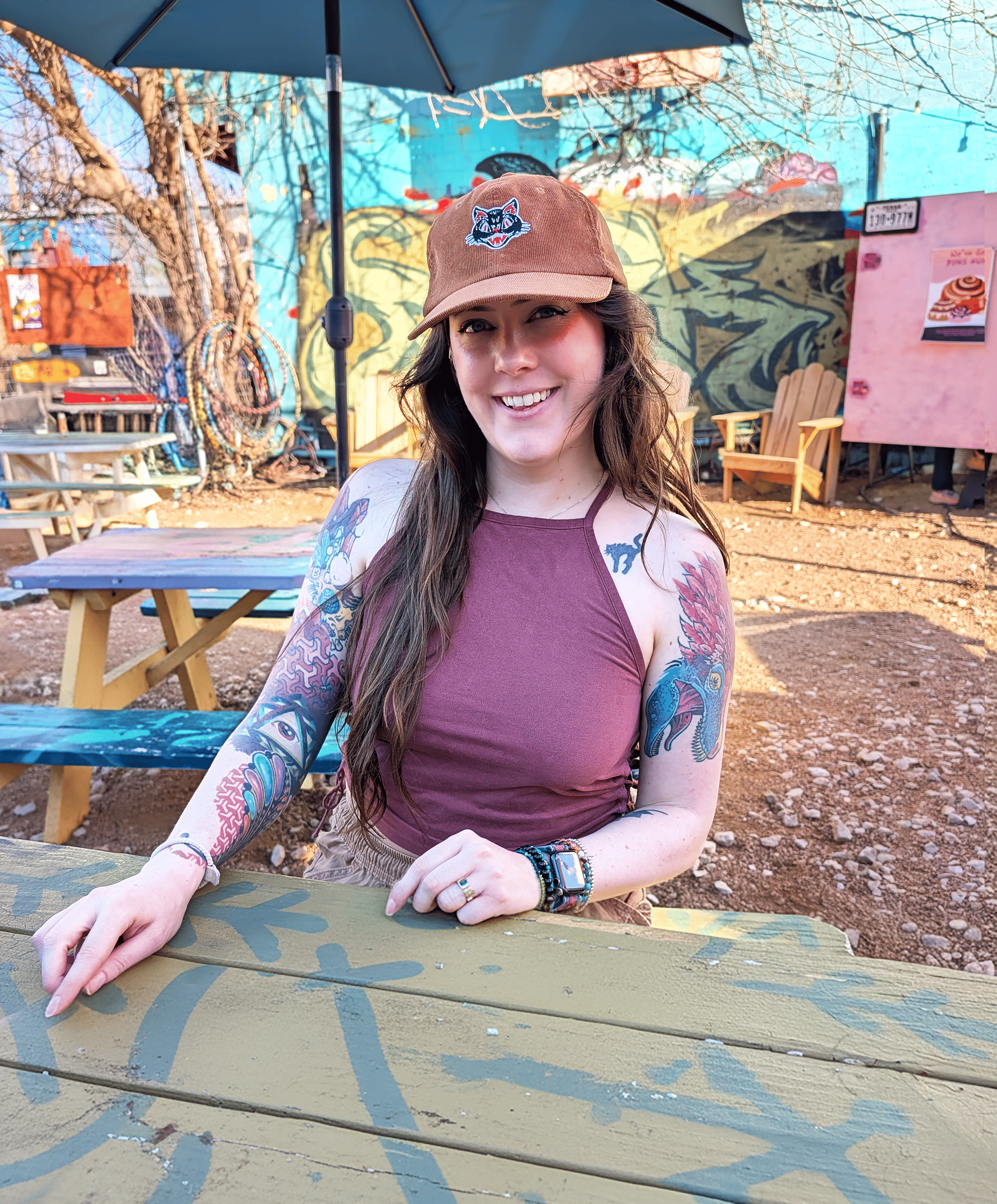 I’m an artist at heart and always have been. Oil pastels, colorful illustration, witchy vibes, plants everywhere. We host game night on Mondays and dancing and live music are non-negotiables.